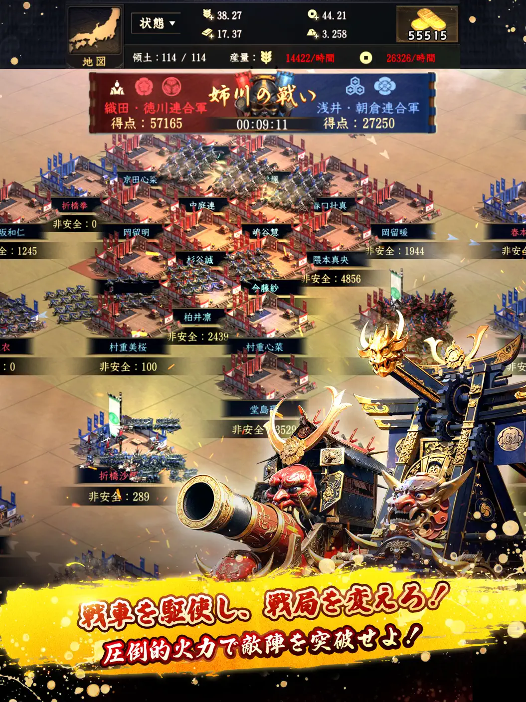 さらに、他のプレイヤーと同盟を組んだり、敵対したりと、自分なりのプレイスタイルで天下統一を目指すことができます。